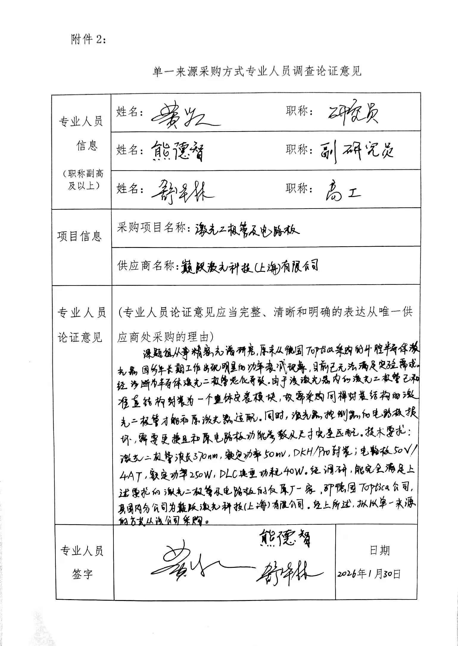 中国科学院精密测量科学与技术创新研究院关于向巅跃激光科技(上海)有限公司采购激光二极管及电路板单一来源采购公示