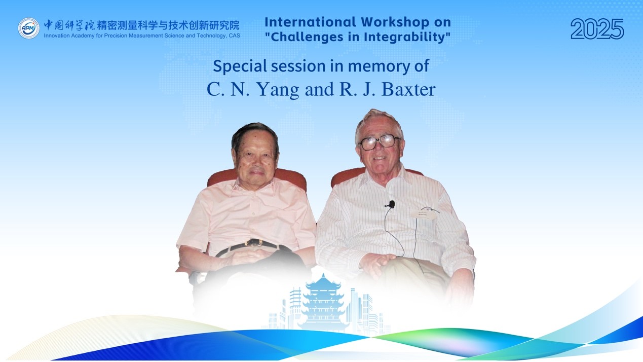 在开幕式上,精密测量院党委书记、副院长柳晓军致欢迎辞,介绍了单位总体发展概况及原子分子物理领域的研究进展。来自美国、欧洲、亚太等12个国家和地区的38位数学物理专家作了大会报告,其中包括22位国外专家。与会专家涵盖数学物理、凝聚态物理、高能物理和原子分子物理等领域,多位为美国科学院院士、物理学会会士、昂萨格奖获得者等世界顶尖学者,大家围绕相关研究开展了深入交流。本次研讨会特别设立了纪念杨振宁先生与罗德尼·巴克斯特教授的专场报告会。杨振宁先生(诺贝尔奖获得者)与罗德尼·巴克斯特先生(昂萨格奖、英国皇家奖章获得者)是量子可积理论的开创者,他们共同奠基的杨-巴克斯特方程为该领域奠定了基石。2025年,两位先生相继离世,是世界科学界的重大损失。中国科学院院士叶朝辉、王玉鹏、林海青出席了报告会。会上,林海青院士、M. Batchelor教授、施郁教授、翟荟教授、顾正澄教授、V. Korepin教授、P. Wiegmann教授分别作了专题报告,共同回顾了两位先驱崇高的科学境界、高尚的师者风范与不朽的学术贡献。