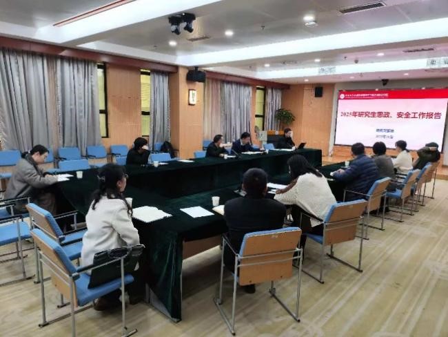 会议听取了2025年研究生思政、安全工作整体情况汇报,并针对重点工作和典型案例,围绕兼职辅导员选配、强化导师第一责任人意识、防范安全风险、联培生管理等进行了交流研讨。
